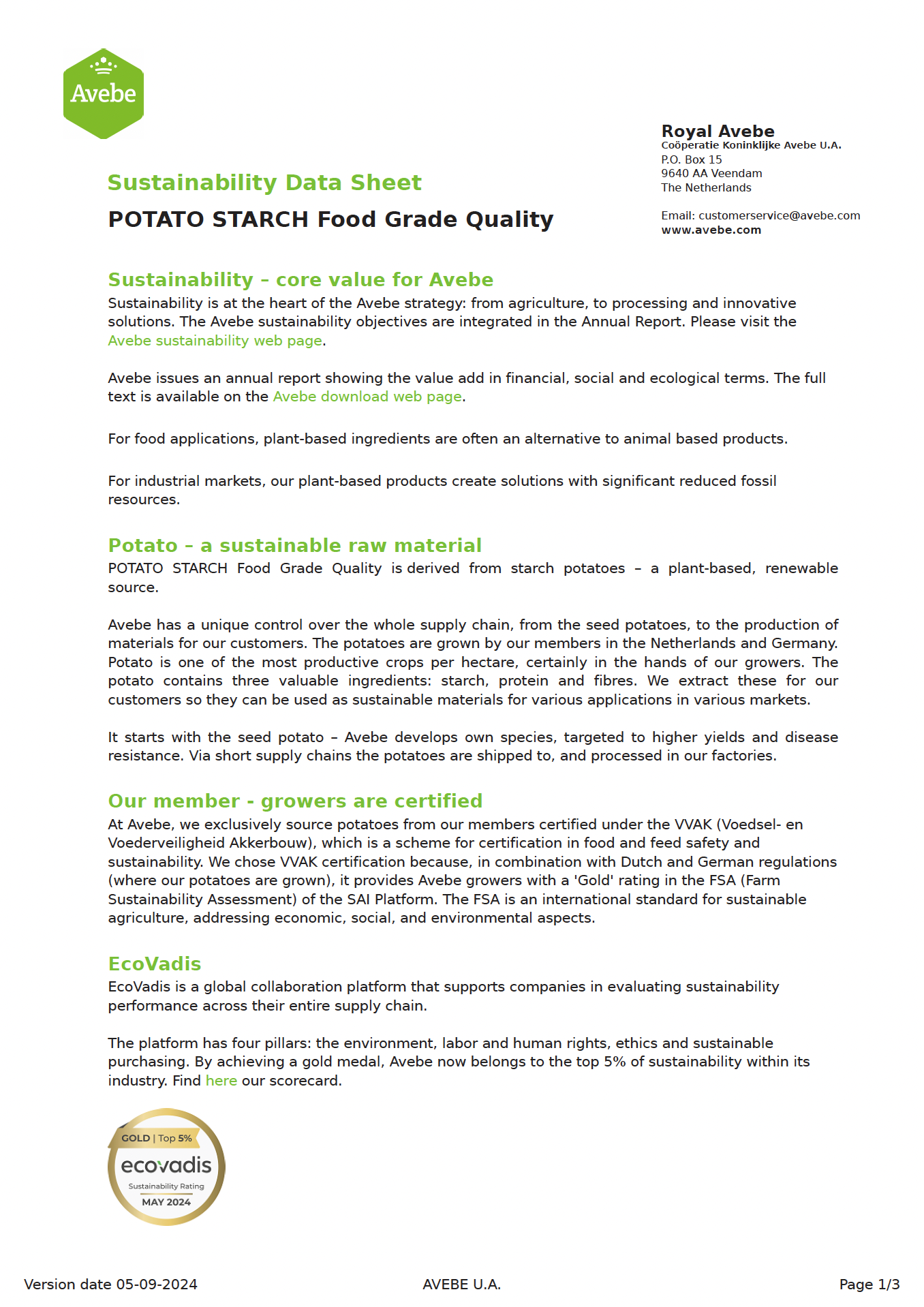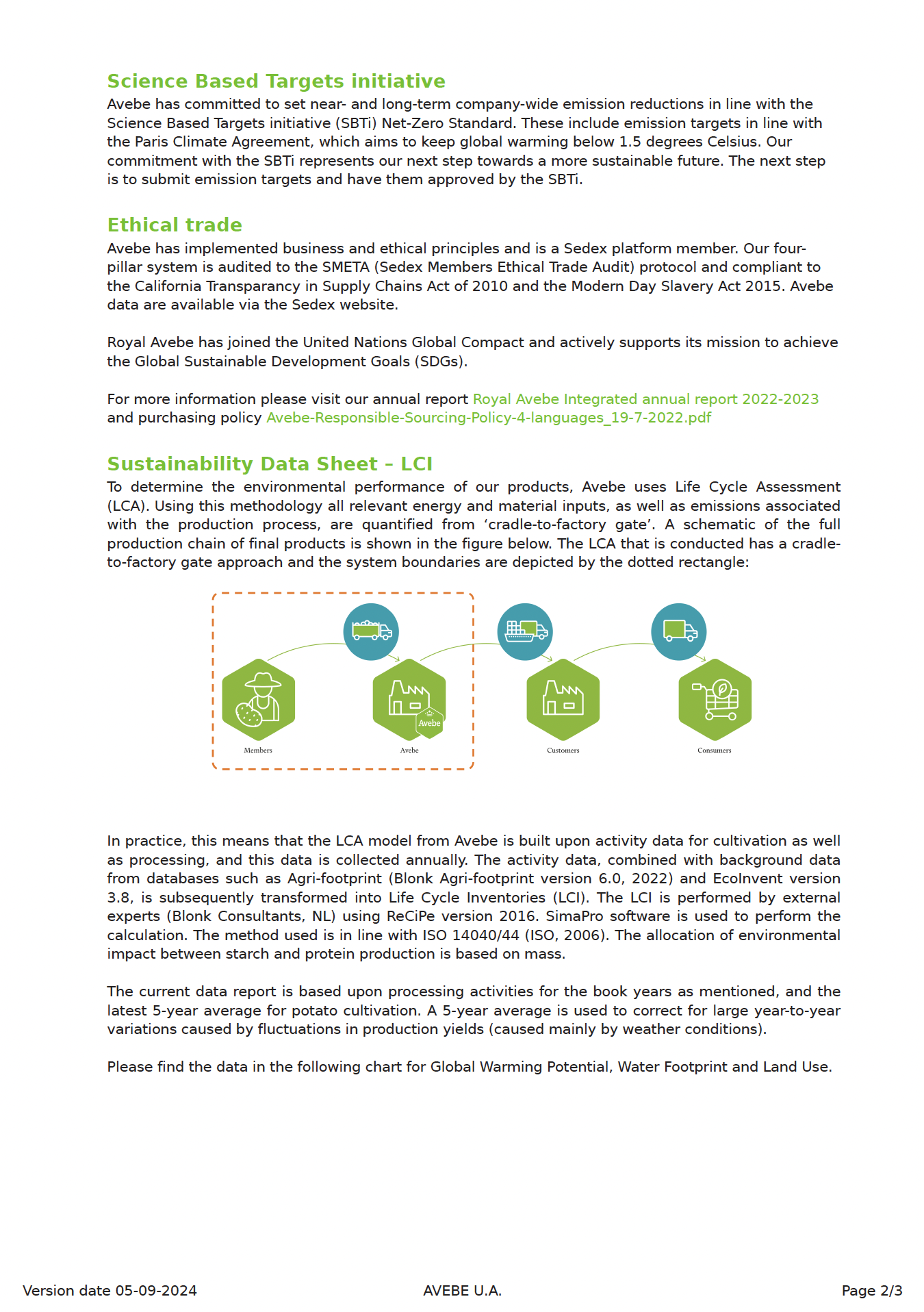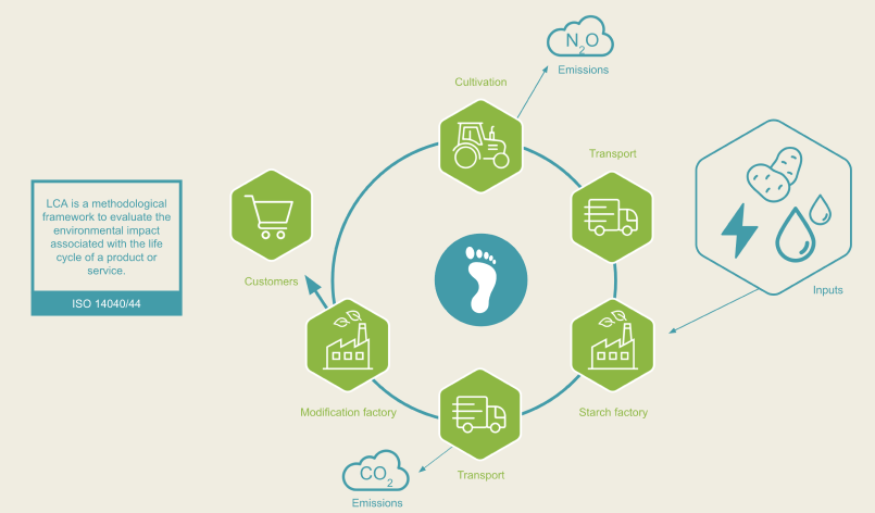 Our (bio-based) products have a lower environmental footprint compared to other starch, protein crops, and animal-based alternatives. Detailed Life Cycle Assessments (LCAs) are available which helps you precisely track the environmental impact of each product, focusing on water, land use and global warming.